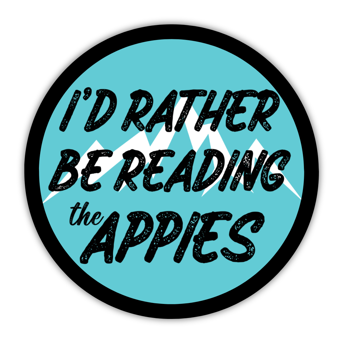 2×2 inch I’d Rather Be Reading the Appies sticker, matte finish. Durable vinyl.